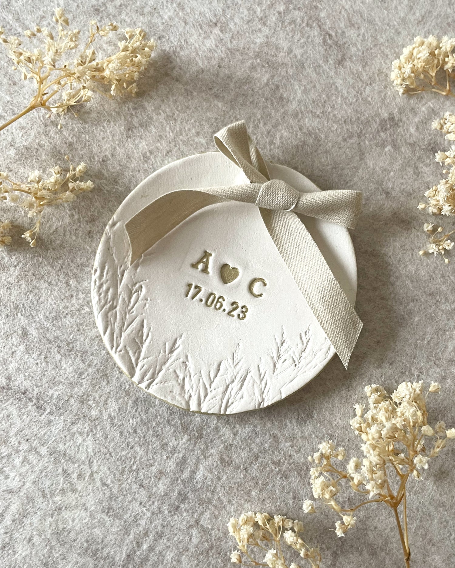 Nuestros porta alianzas están hechos a mano totalmente personalizados para cada pareja. Se les da forma de manera artesanal, se personalizan y se pintan con delicadeza para obtener una pieza única.