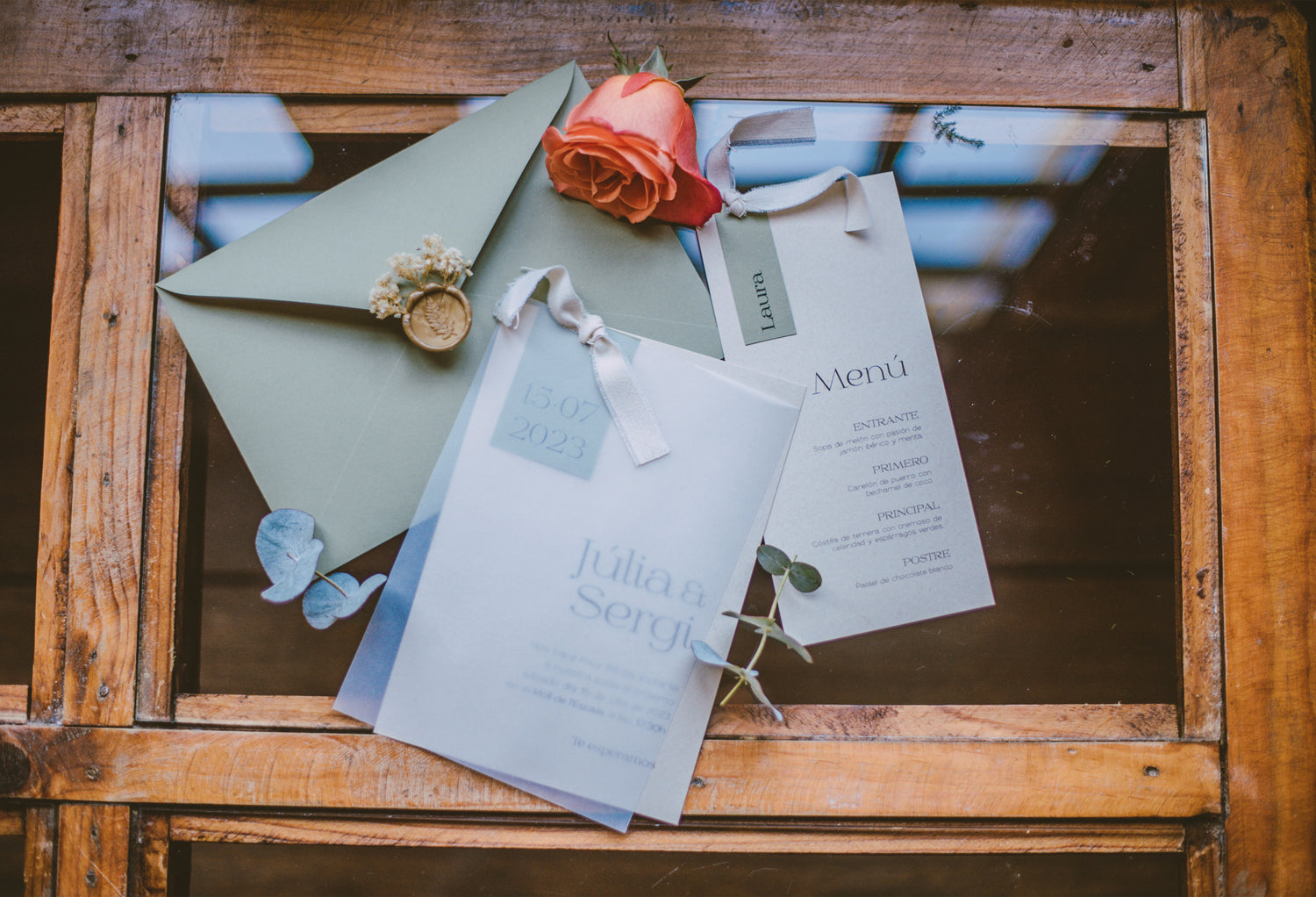 Invitaciones de boda, porta alianzas, sellos de lacre o tinta, sobres artesanales...