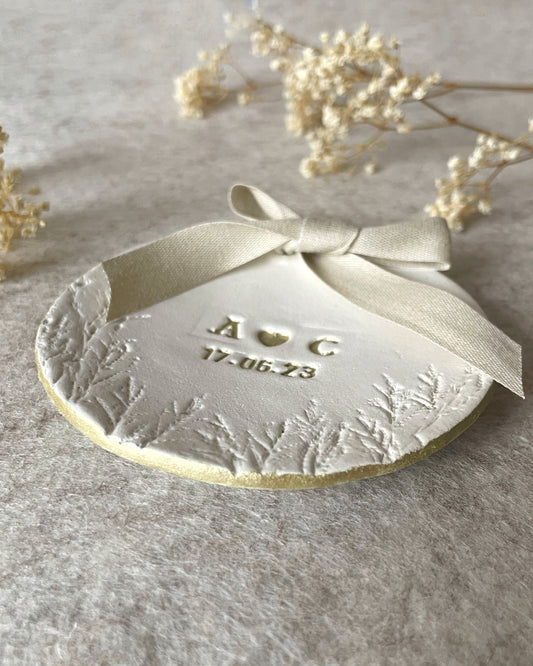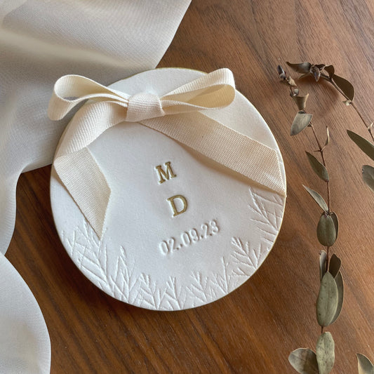 Nuestros porta alianzas están hechos a mano totalmente personalizados para cada pareja. Se les da forma de manera artesanal, se personalizan y se pintan con delicadeza para obtener una pieza única.